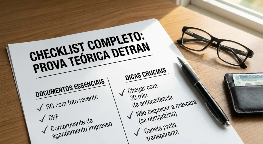 Checklist rápido: o que levar na prova do Detran